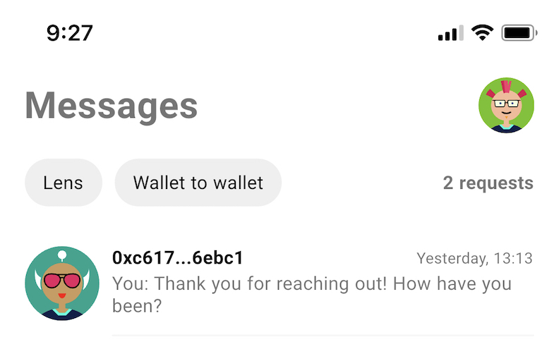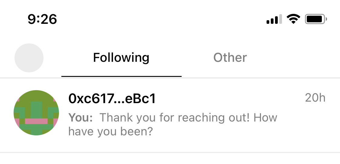 Here are examples of conversation filters implemented in a few apps built with XMTP: