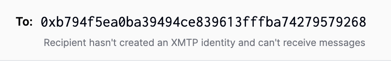 Provide error messaging when a user enters an address in the To field and the address hasn't created an XMTP identity.