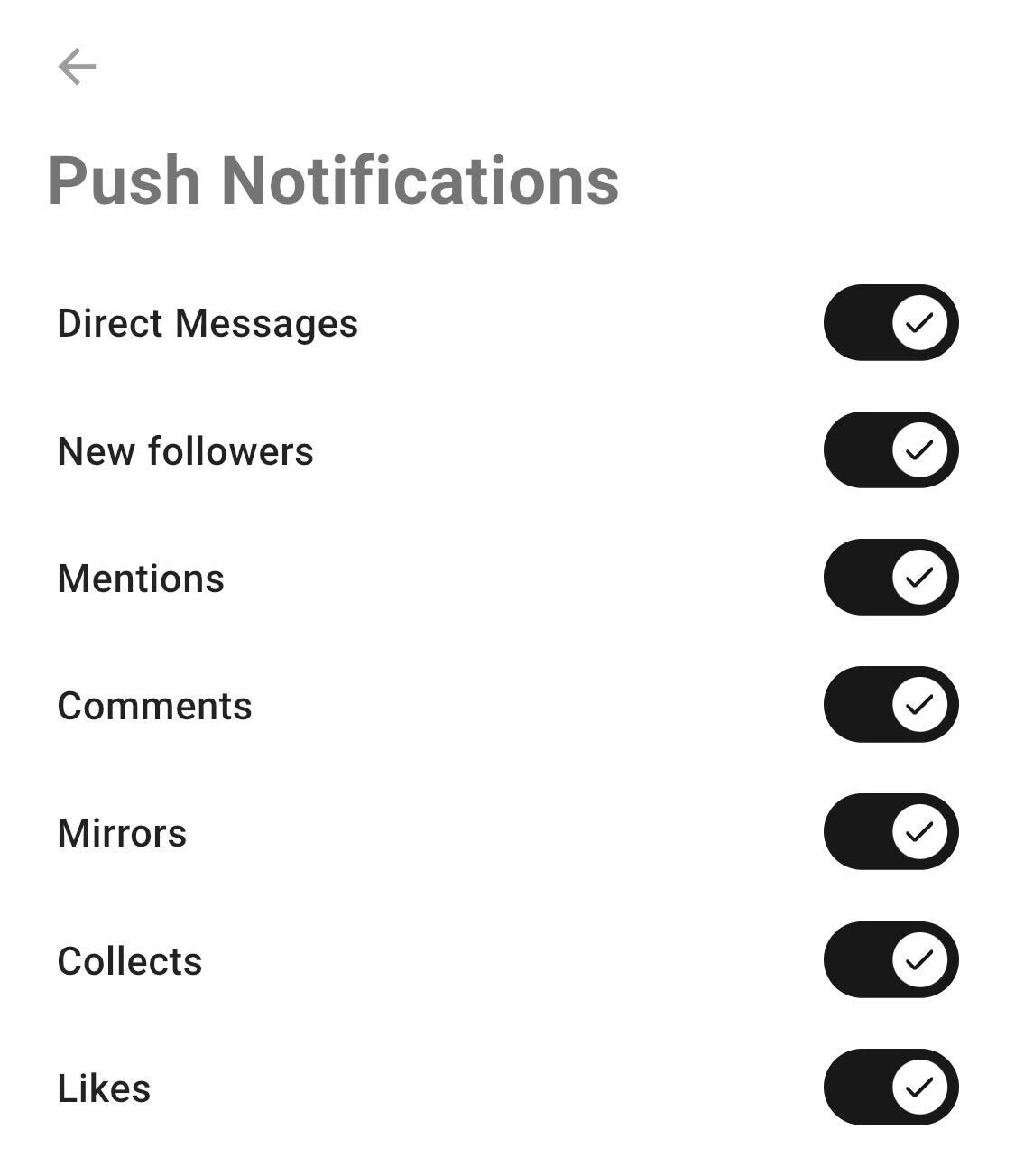 Provide a separate setting for enabling and disabling direct message push notifications. For example, if you’re building a Lens app, provide a setting for XMTP push notifications that’s separate from Lens push notifications for posts, comments, likes, and so forth. For example, here are push notification settings in the Orb app:
